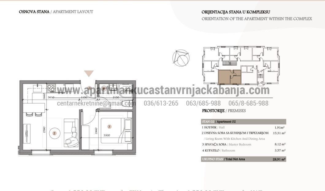 Na prodaju uskoro završeni stanovi u novogradnji na odličnoj lokaciji, 300 m od centra Banje. U okviru objekta nalaze se stanovi različitih kvadratura i spratnosti i svi sa odvojenom spavaćom sobom. Predstavljamo vam jednosoban stan u prizemlju površine 29 m2. Cena je 1550 €/m2 + PDV 10%. Povraćaj PDV-a za prvu kupovinu. Više informacija na 063 685 988, 064 5786629, i http://apartmankucastanvrnjackabanja.com/property-types/stanovi/. Kupac ne plaća agencijsku proviziju!