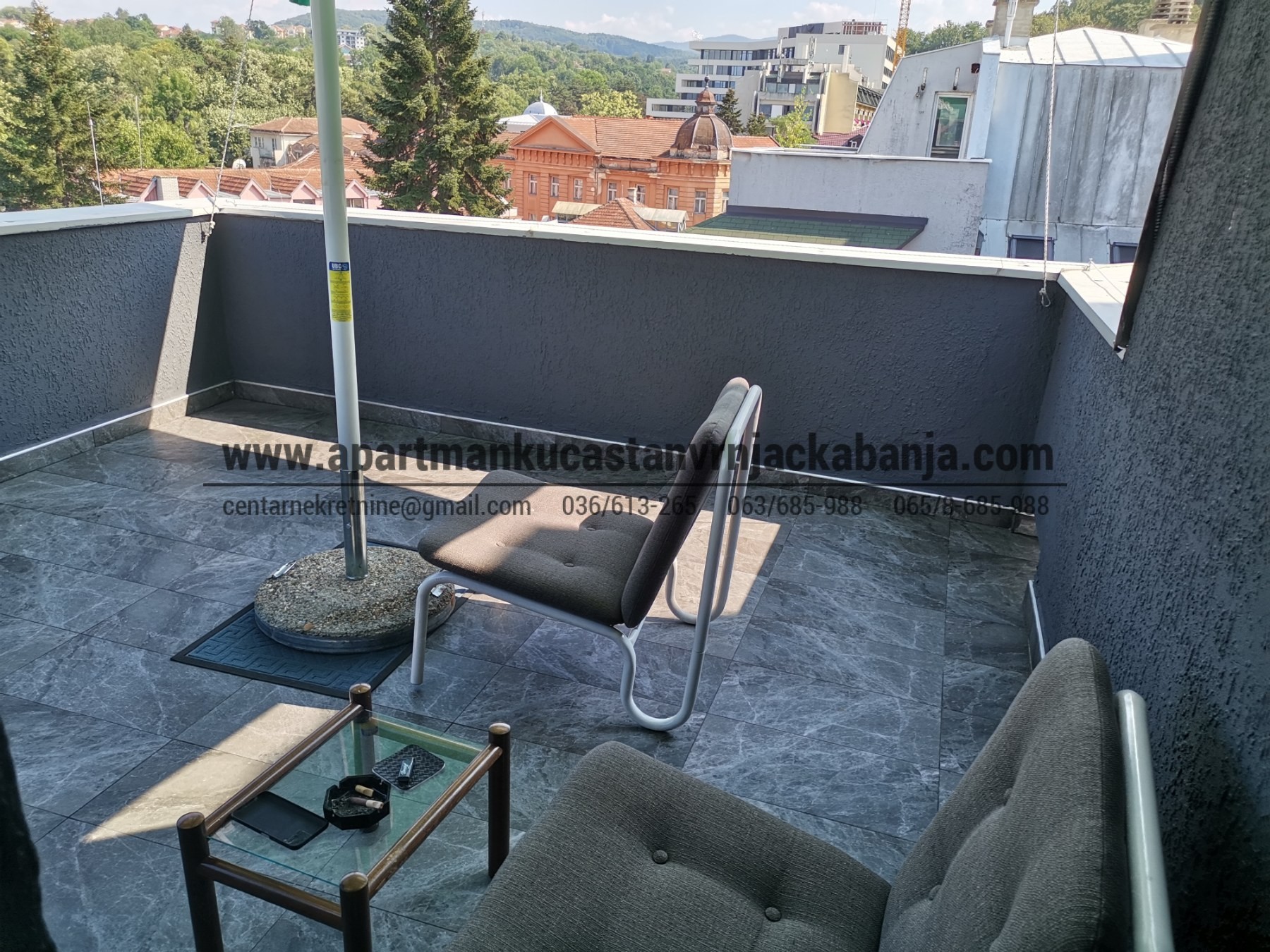 Na prodaju dvosoban, kompletno renoviran stan, u samom centru Vrnjačke Banje (kod Pošte). Sastoji se od stambenog prostora površine 60 m2 i prostrane terase površine 15 m2 sa koje se pruza pogled na celu Banju. Idealna lokacija za izdavanje studentima. Cena 85.000 € uz moguću korekciju. Više informacija na 063 685988, 064 5786629 http://apartmankucastanvrnjackabanja.com/property-types/stanovi/. Kupac ne plaća agencijsku proviziju